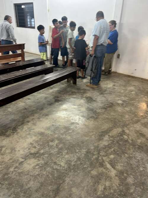 During the day we worked to break through layers of concrete, digging four deep pits. Gathering rocks from a nearby creek and filling the holes back to create piers for the new slab floor. We also put sealant on the Church roof to prevent rain leakage. The spiritual rewards far surpassed any physical exertion. Each evening, we went out to a different mission church, witnessing the transformative power of the gospel as our brother Carlos preached the Word of God. It was a joy to see four souls added to the kingdom of God!